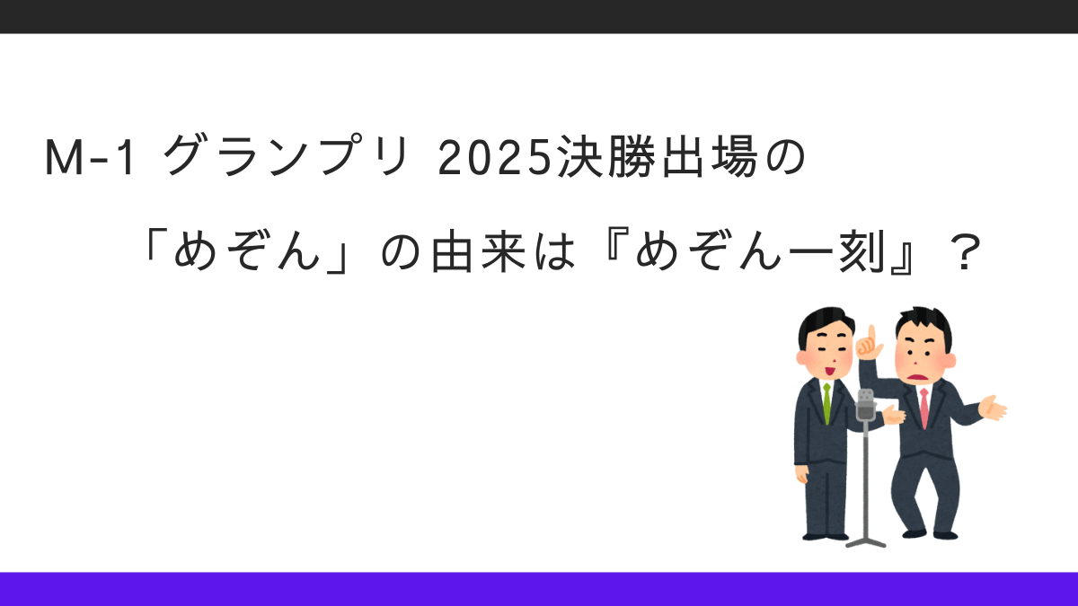 この記事では、M-1 2025決勝進出コンビ・めぞんとは何者なのか、そしてコンビ名の由来は本当にめぞん一刻なのか紹介します。